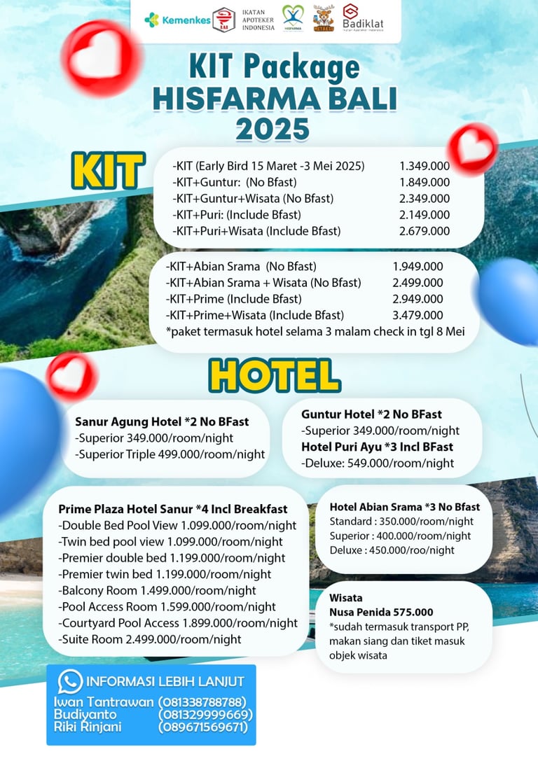 Bukan cuma pantun, tapi ini undangan spesial buat kamu! MUSKERNAS & KIT HISFARMA 2025 hadir di Bali, 8-11 Mei 2025, membawa pengalaman luar biasa bagi para APOTEKER!